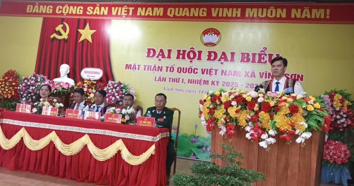 Sáng ngày 14 tháng 10 năm 2025, tại Hội trường Nhà văn hóa xã Vĩnh Sơn, Đại hội Đại biểu Mặt trận Tổ quốc Việt Nam xã Vĩnh Sơn lần thứ I, nhiệm kỳ 2025 - 2030 đã long trọng diễn ra với sự tham dự của đông đủ đại biểu đại diện cho các tầng lớp nhân dân trong xã.